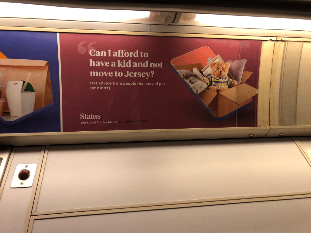 Combined, the nine ads in this essay alone ran through three boroughs with a collective population of 6.5 million and had the potential to infiltrate 5.4 million lives in a single day, without ever having to, God forbid, go to Jersey.