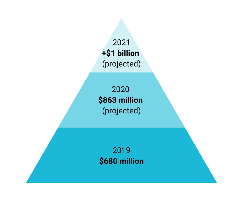 Yet, in spite of the platform’s purchasing barriers and the premium price for listeners, podcast sponsorships continue to pique advertiser interest. In 2019, $680 million was spent in podcasting ad revenue and that number is projected to climb to over $1 billion by 2021.